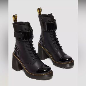 DR MARTENS GAYA 10-EYE ALTERNATIVE LEATHER HEELED BOOTS