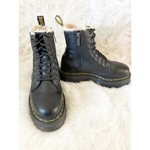 DR MARTENS Jadon Faux Fur Black Platform Leather Combat Boots 7