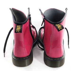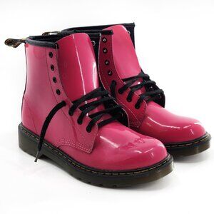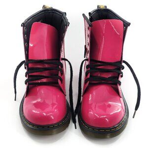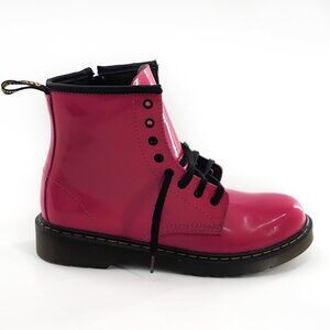 DR. MARTENS Junior 1460 NWOB Patent Leather Lace Up Boots Hot Pink Combat Zipper Closure Fall Winter