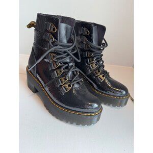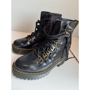 DR. MARTENS Laurenne Black Distressed Patent Leather Lace Up Boots EU 37 US 6
