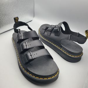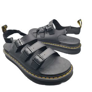 DR. MARTENS Mens Sandals SOLOMAN Black Leather Buckle Strap Comfort Sz US 13 New
