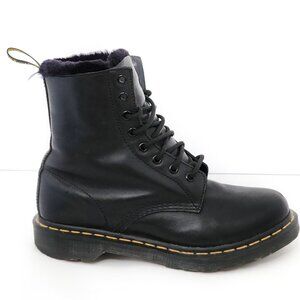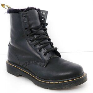 DR. MARTENS Serena Black Faux Fur Lined Combat Boots Black Women's Casual Lace Up Fall Winter School Goth Grunge