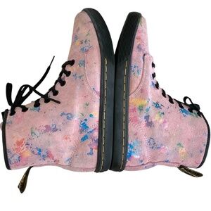 key words: pink rainbow burst dr martens docs combat boots ankle lace up 1460 airwair softwair punk rock casual confetti suede leather iconic festival boho bohemian london street style trendy Academia, Contemporary, Minimalist, Preppy, Baddie, VSCO, Soft Girl, Vermontcore, Cabincore, Barbiecore, Glam, Malibu Barbie
