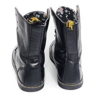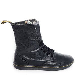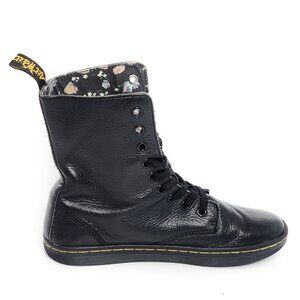 DR. MARTENS Stratford Black Floral Foldover Leather Combat Boots Black Women's Lace Up Fall Winter Comfort Shoes Casual School Work