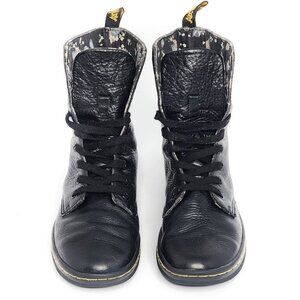 DR. MARTENS Stratford Black Floral Foldover Combat Boots Black Women's