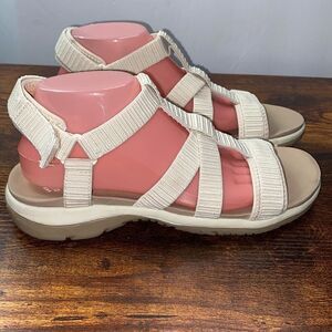 DR. SCHOLL'S Adalia Sz 10 Beige Textured Fabric Adjustable Ankle Strap Sandals
