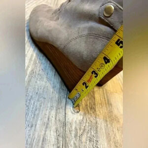The women's Dr. Scholl's' Conquer wedge bootie will help you take on whatever the day throws at you. From the fabric upper to the Memory Foam footbed, you'll look fashionable and stay comfortable. Lace up closure Decorative button strap Soft fabric lining with a memory foam cushioned comfort footbed Foam midsole for added support Durable traction outsole 2 and 1/4 inch stacked wedge heel