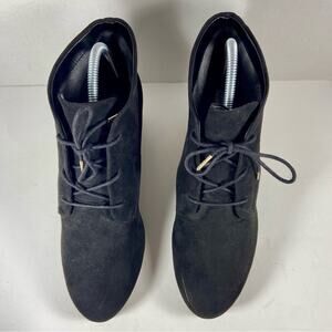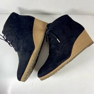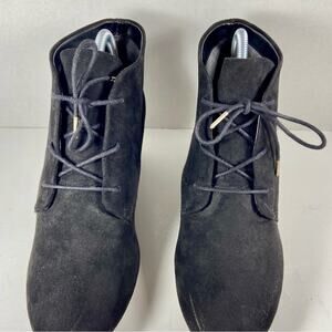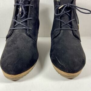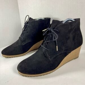 DR. SCHOLLS black suede lace up wedge booties western boho comfort shoes