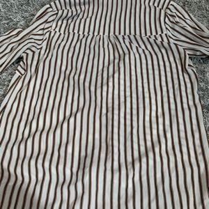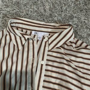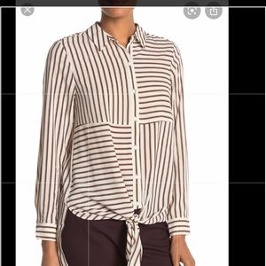 A classic long sleeve button down shirt with a trendy tie front detail. fits true to size. Spread collar-Long sleeves with button closure cuffs Button front closure -Approx. 25" shortest length. 30.5" longest length(size S)