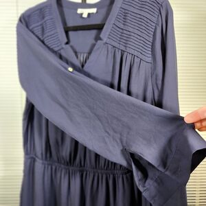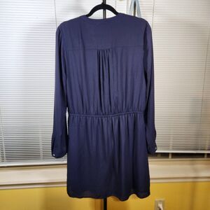 DR2 $65 Large Navy Long Sleeve V-neck Pleated Shoulder Mini Dress w/ Pockets