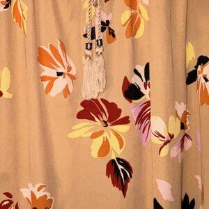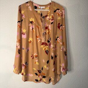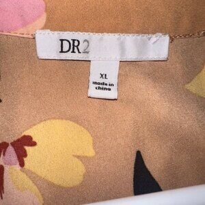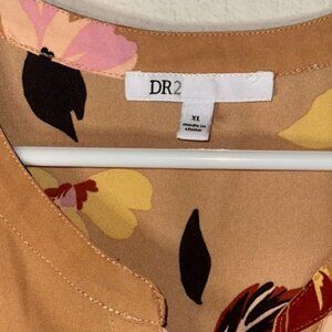 DR2 Anthropologie Woven Peasant Top Blouse Shirt Boho Floral Beige Brown XLarge