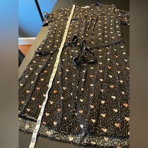 DR2 Black Red Abstract Heart Long Sleeve Fully Lined Shirt Dress Women’s Size S
