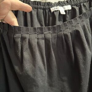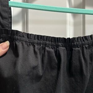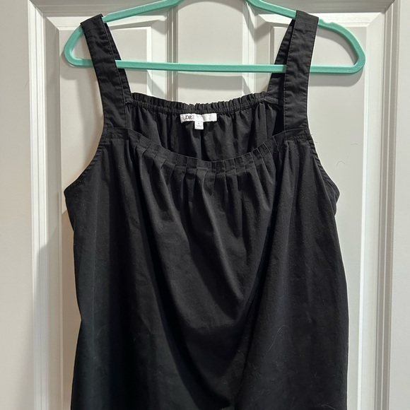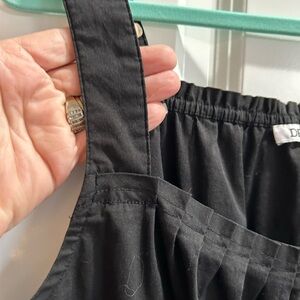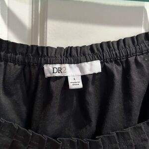 This black tank top by DR2 features a relaxed, ruffled style with wide shoulder straps and a soft, flowing fabric. The gentle pleaded front at the neckline adds a touch of elegance, back neck has elastic making it easy to get on and off and a versatile piece for any occasion. Gently worn in great condition. Pit to pit 21”, front neck to hem 16” back neck to hem 19” cotton blend