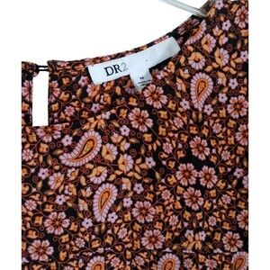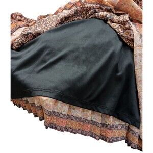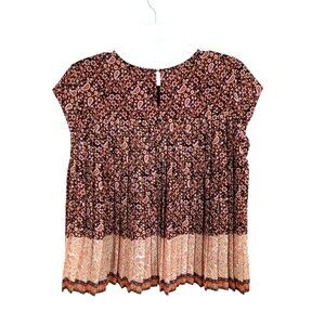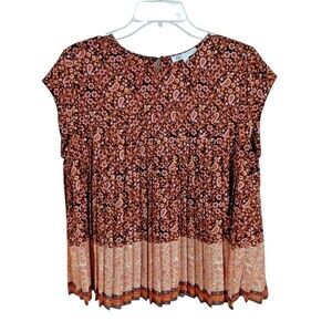 DR2 Blouse Womens Medium Brown Orange Cottagecore Pleated Paisley Short Sleeve