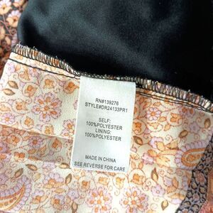 DR2 Womens M Brown Orange Gold Print Blouse Cottagecore Pleated Paisley Short Sleeve