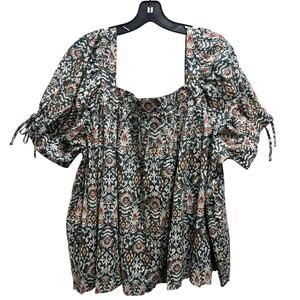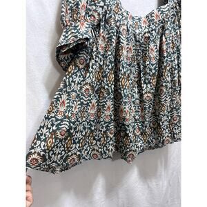 DR2 Bohemian Blouse XL Puff Sleeve Square Neck Green Lightweight Indie Cottage