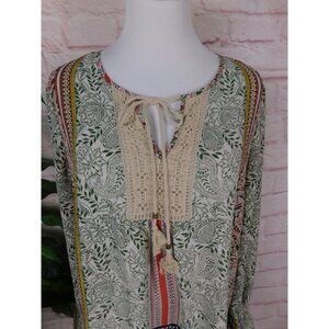 DR2 Boho Peasant Blouse Vintage Style Crochet Floral Print Top M