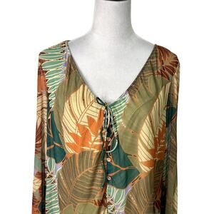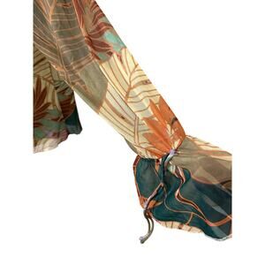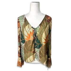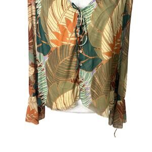 DR2 By Daniel Rainn Blouse Sheer Leaf Print Button Up Bell Sleeve Women's L NWOT