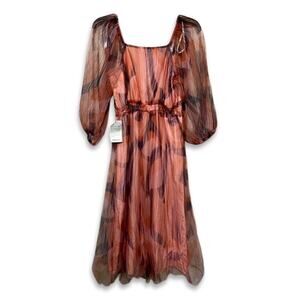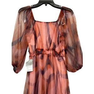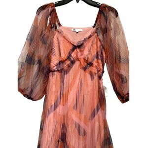 DR2 By Daniel Rainn Midi Dress Long Sleeves Pleated Floral Coral Multi W XS NWT
