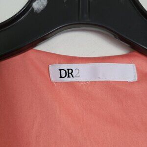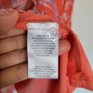 DR2 Coral Pink Floral Faux Wrap Flutter Short Sleeve V Neck Midi Dress Sz Medium