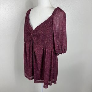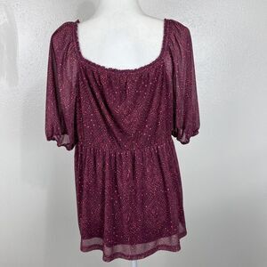 DR2 Daniel Rainn Blouse Women Extra Large Burgundy Puff Peasant Sweetheart Smock