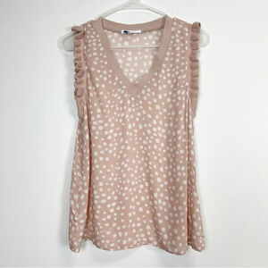 DR2 Daniel Rainn Blouse Womens Medium Light Pink White Dot Ruffle