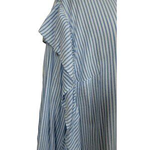 DR2 Daniel Rainn Blue White Striped Ruffled Button Front Long Sleeve Blouse