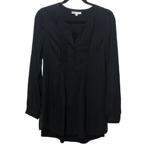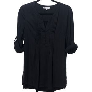 DR2 Daniel Rainn Roll Tab Pleated Tunic V-Neck Blouse Black Size Small