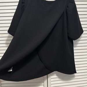 DR2 Daniel Rainn Texture Puff Sleeve Split-Back Blouse Black Size 2X 5