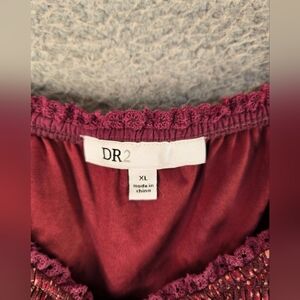 DR2 Daniel Rainn Women Peplum Chiffon Blouse Sz XL Maroon Pink Dots Short Sleeve