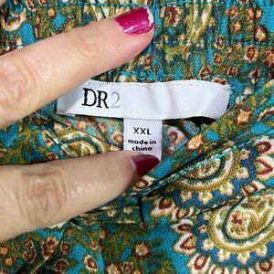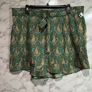 DR2 Daniel Rainn Womens Green Paisley Shorts Pockets Tie Waist XXL