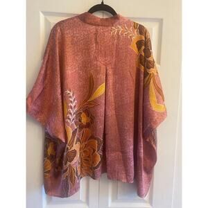 DR2 Daniel Rainn floral lightweight 3/4 sleeve Ruana front cardigan kimono L/XL