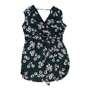 DR2 Dark Green Faux Wrap Floral V Neck Dress Size 2x