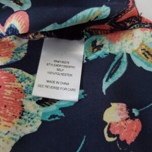 DR2 floral asymmetrical sleeveless top. V neck with a small loop & button closure, and ruffle trim that cascades together down the front. Asymmetrical side has a partial slit. Very soft material