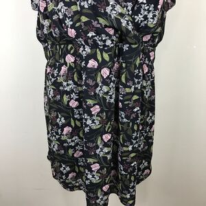 Black floral dress, short sleeve length, open back detail, v-neckline. Fully lined. Size 3X. New without tags