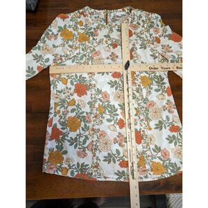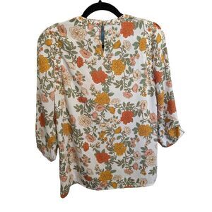 DR2 Floral Blouse Round Neck 3/4 Sleeves Women's Size XS