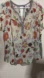 DR2 Floral Blouse with Ruffled Mandarin Collar and Cap Sleeves Polyester XL size