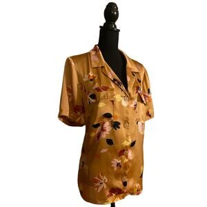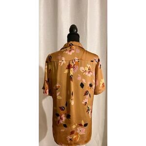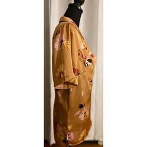 DR2 Floral Print High Low Short Sleeve Button Down Blouse XL
