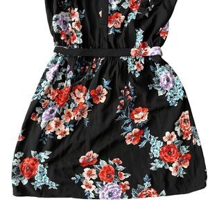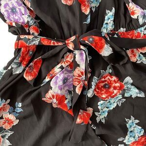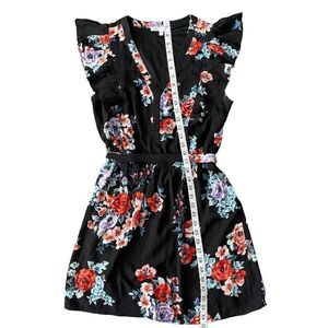 Flutter sleeves, ruffles, bow tie belt around waist, floral, flower, spring, summer, casual, tropical, vacation