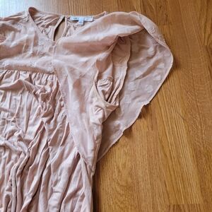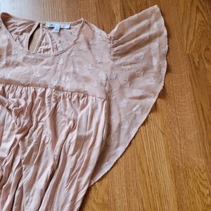 Super comfy top that you can dress up or down! Very cute unique type of flutter sleeves with a keyhole back. Babydoll-esque powder pink/beige.