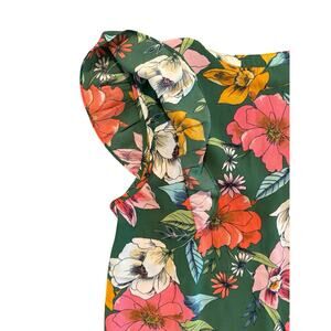 DR2 Green Floral Ruffle Sleeve Blouse Women’s Small V Neck Top Summer