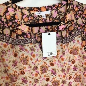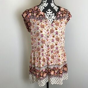 DR2 High Low Floral Print V Neck Peplum Hem Tunic Style Top