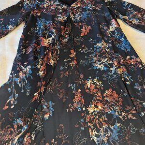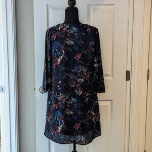 Item: DR2 Navy Blue Casual Floral Popover V-Neck 3/4 Sleeve Dress
