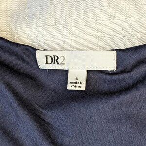 DR2 Navy Blue Casual Floral Popover V-Neck 3/4 Sleeve Dress