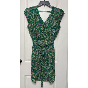 DR2 Paisley Print V-Neck Cap Sleeve Mini Dress in Green Size M