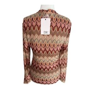 DR2 Pink Brown Geometric Knit Cardigan Small Long Sleeve Button Down NWT