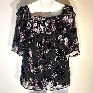 DR2 SZ S Purple & Black Burnout Velvet Top Whimsigoth Boho Dark Romance 80's