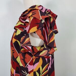 DR2 Shirt Top Womens Size M Tiered Ruffle Flutter Sleeves Smocked Keyhole Neck