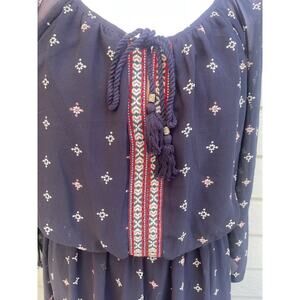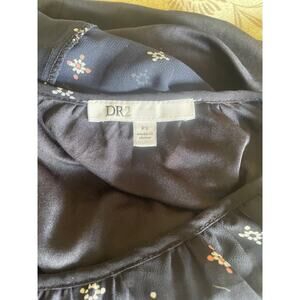 DR2 Size Petite Small Midi Dress Navy Blue Print Long-Sleeve
