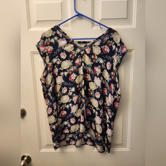 Short sleeve navy floral print with vneck.